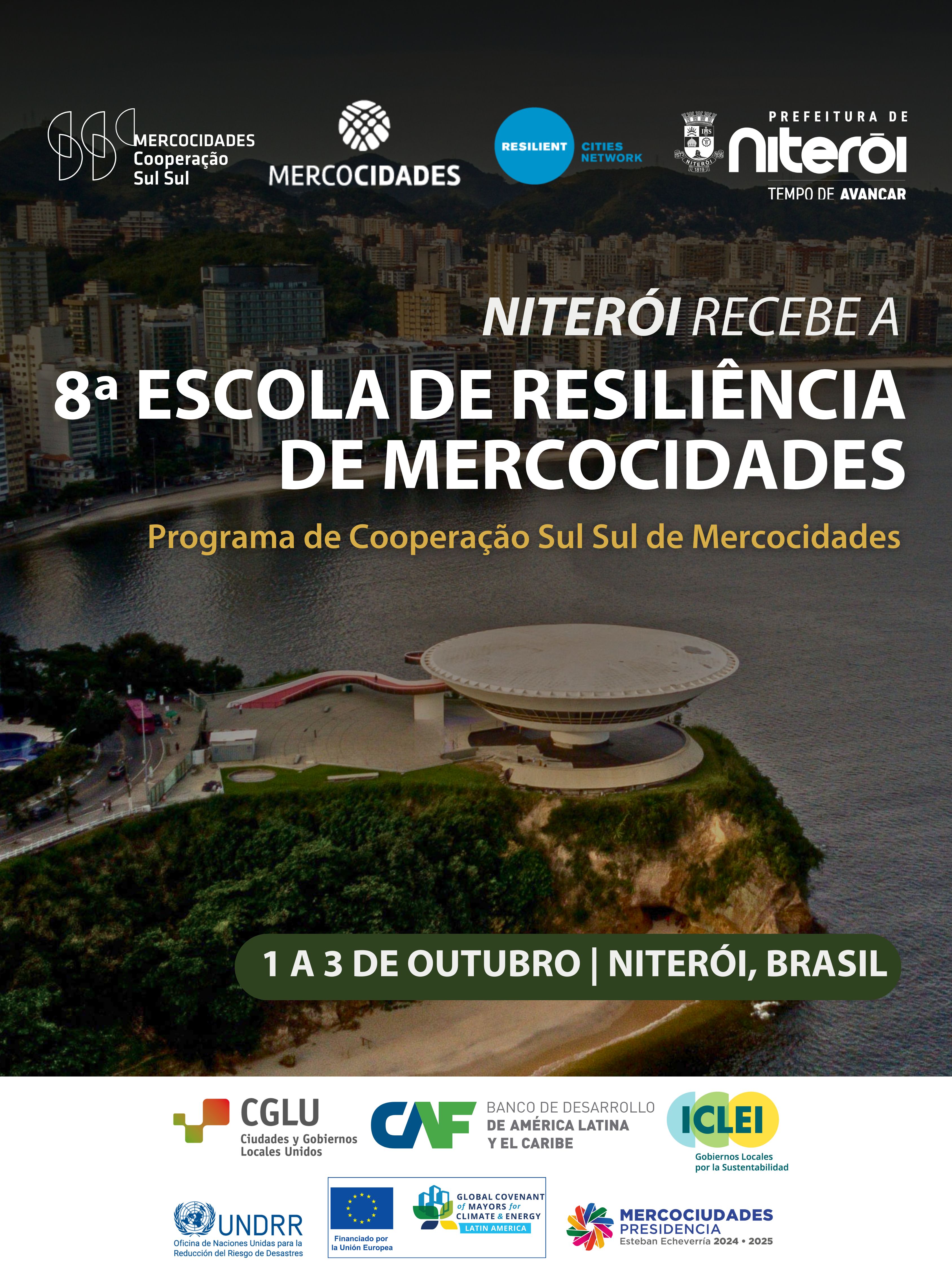 Niterói recebe, de 1º a 3 de outubro, a 8ª edição da Escola de Resiliência da Rede Mercocidades. A iniciativa, uma parceria entre o Programa de Cooperação Sul-Sul de Mercocidades e o R-Cities (Rede Global de Cidades Resilientes), vai trazer representantes de seis países e 23 cidades da América Latina e Central para um treinamento voltado a governos locais. Niterói foi escolhida como cidade-sede pelo trabalho que vem desenvolvendo na agenda da resiliência ao longo dos últimos anos.